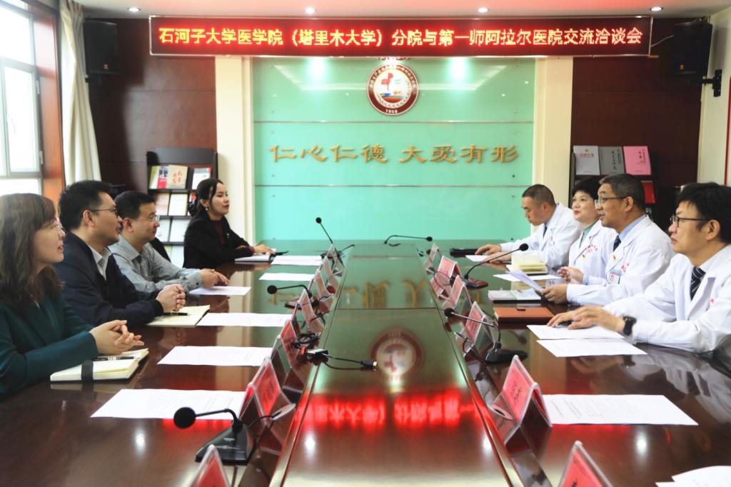 副院长曹祥龙,第一师阿拉尔医院党委副书记、院长王志强,党委委员、副院长谭塔林,及相关人员参加。座谈会在第一师阿拉尔医院行政楼2楼会议室召开。