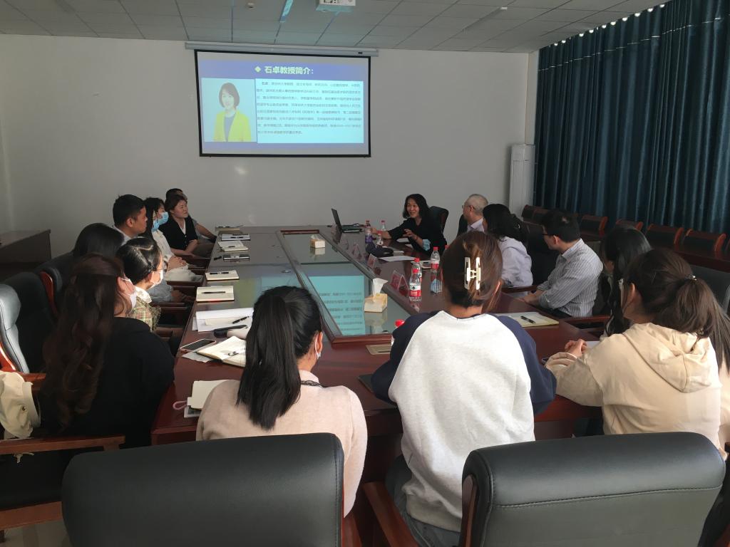 石卓从教学和科研互相促进方面介绍自己的体会和经验。她鼓励教师们充分利用教学实验平台的先进设备和条件,结合教师本身的优势开展科研工作。她举例说,作为药理学教师在平时的实验教学中所掌握的多项小动物实验操作技能,比如腹腔注射、灌胃等,都可以与科研工作紧密结合起来。