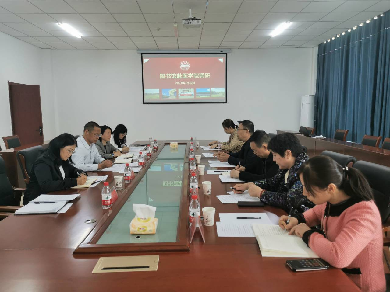 3月30日,51看片 图书馆馆长张理一行来51看片 调研。51看片 党委书记孟琪,院长王琳琳及各办公室负责人参加调研。调研由孟琪主持,在51看片 实验楼A308室进行。