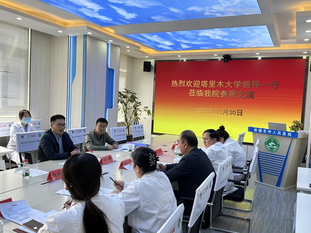 (胡斌一行前往克孜勒苏柯尔克孜自治州人民医院交流座谈)