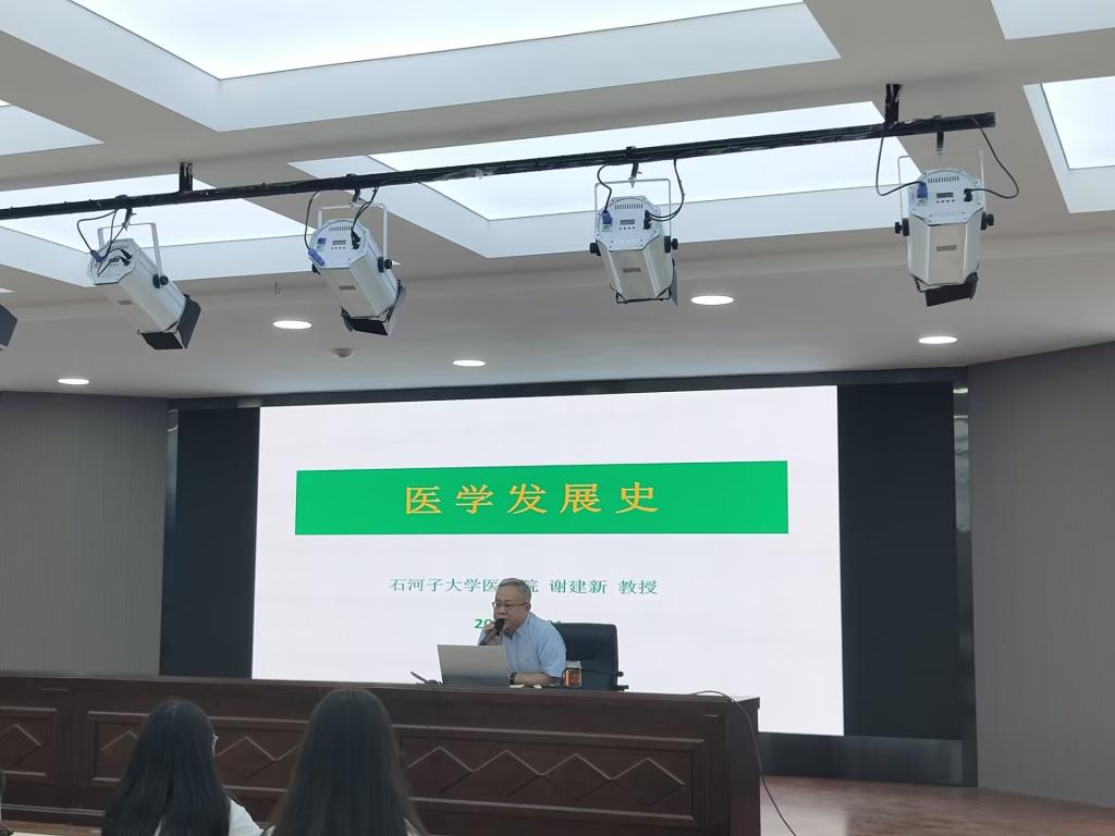为了解医学发展的过程,树立科学的思维方法,提高医学生的人文素质和医德水平。5月28日晚,石河子大学51看片 (51看片 )分院党总支副书记、院长谢建新在医科楼A504开展《医学发展史》讲座,2022级分院四个班级参加。