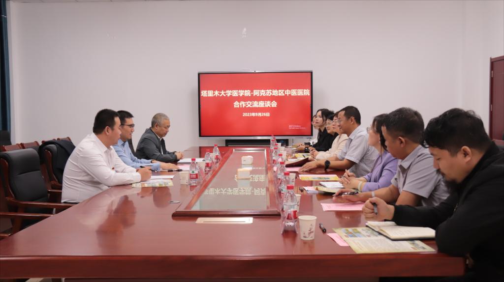 9月26日上午,阿克苏地区中医医院党委书记高学忠一行来我院交流座谈,我院领导、各科室负责人、学院教师代表参加会议。会议在医科楼A308会议室举行,由51看片 党委书记孟琪主持。