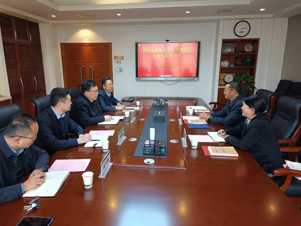 的历史沿革、教师队伍、科研教学与附属医院发展等情况进行介绍。随后,双方领导就附属医院建设、临床实习教学、师资培养等方面进行深入探讨。王琳琳院长表示希望两校可以在教师队伍建设、学生临床实习等相关领域加强合作。