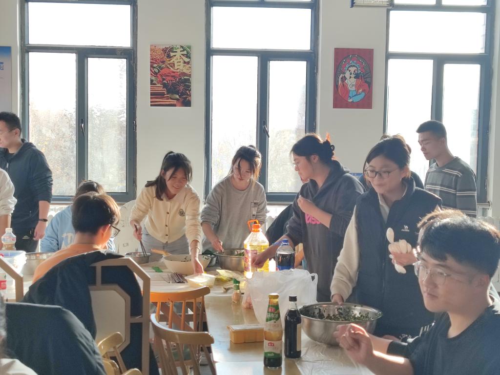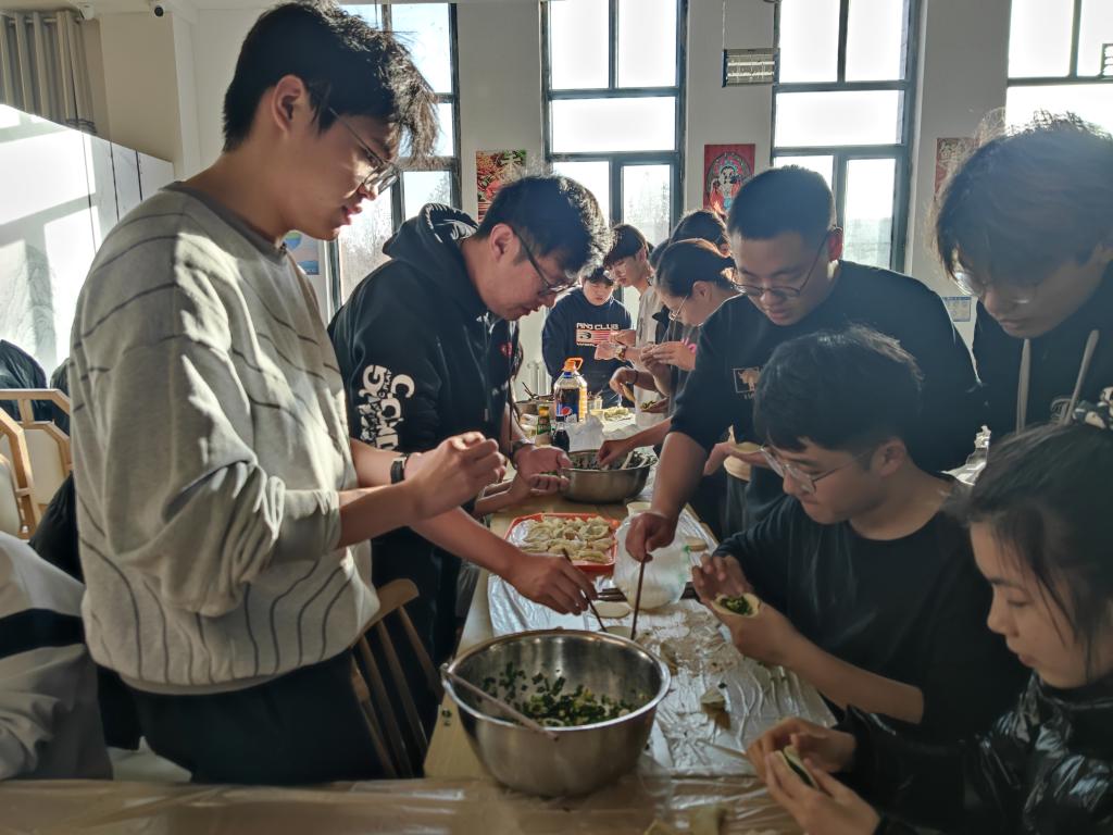 活动开始,老师、同学们一起包饺子,同学们在互帮互助中感受到了团队的力量和班级的温暖。