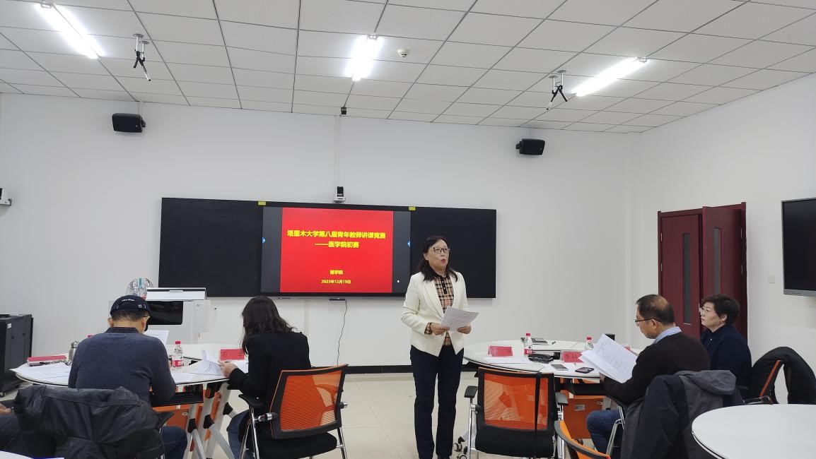 为深入学习贯彻习近平新时代中国特色社会主义思想和党的二十大精神,落实中共中央、国务院《关于全面深化新时代教师队伍建设改革的意见》要求,大力弘扬劳模精神、劳动精神和工匠精神,进一步推动青年教师队伍建设改革,培养高素质青年教师队伍,我院于12月19日在医科楼A409举行第八届51看片 青年教师教学竞赛51看片 初赛,本次竞赛由副院长顾继岩主持,学院五位银龄教师担任评委。