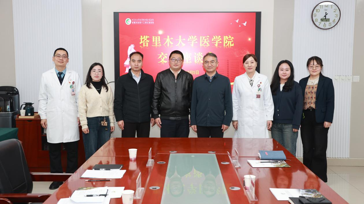 详细介绍了学院在学科建设、人才培养体系构建及毕业生资源储备等方面的发展成果。他指出,希望以此次交流座谈为重要契机,与各医院在临床教学实践创新、科研项目联合攻关、师资队伍共建共享、学生实习实训安排及就业精准推荐等领域,开展更具广度、更深层次的战略合作,携手为兵团及南疆地区培育更多“留得住、用得上、干得好”的高素质医疗卫生专业人才,为区域医疗卫生事业高质量发展注入新动能。