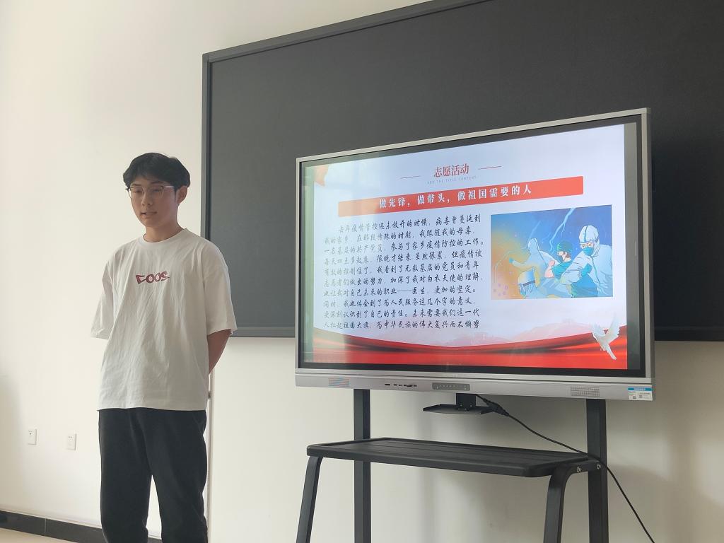 团委书记万明辉介绍推优基本流程与相应推优要求。入团候选人分别进行了3-5分钟的个人陈述,结合对团的认识、学习经历、生活经历、实践经历等阐述了自己对团组织的向往。汇报结束后,团委书记万明辉就候选人的发言进行相应提问。最后共推选出韩宇凡、张弘弢、胡佳、许心雨、张增、王乐乐六位候选人作为入团积极分子。