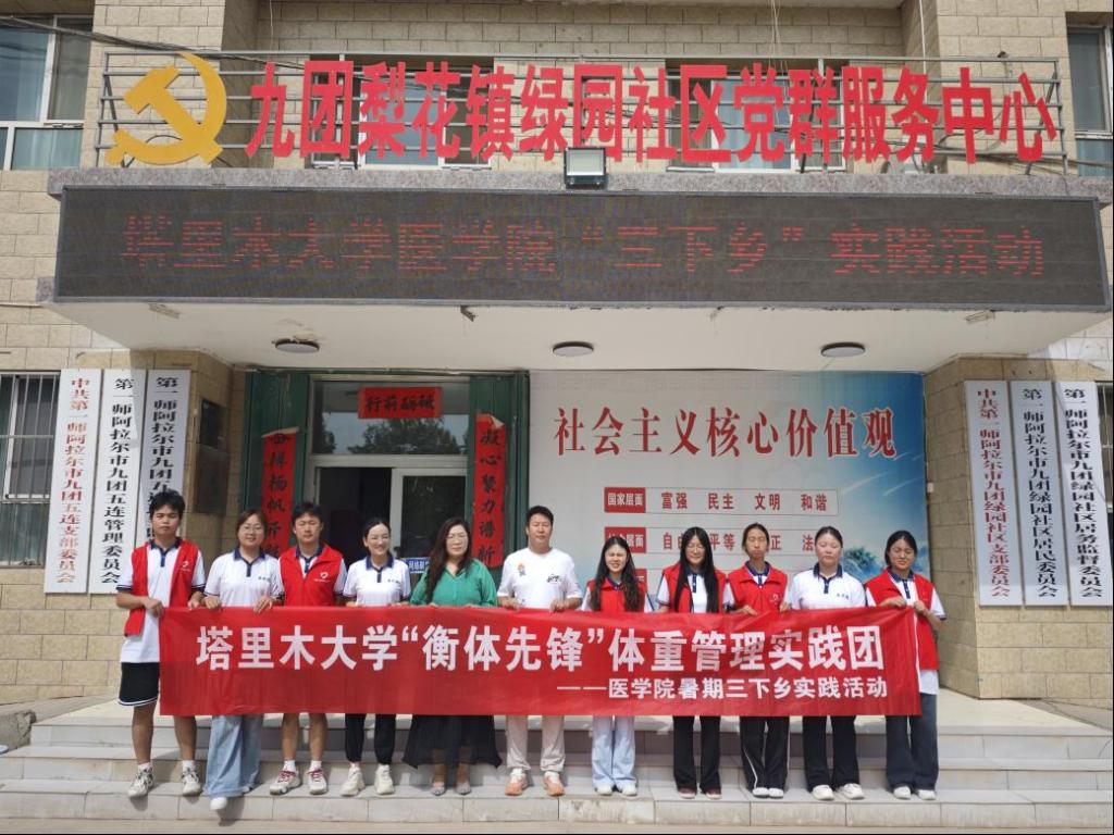 余明星、冯敏老师指导的“衡体先锋”体重管理实践团赴阿拉尔康养中心、花园社区、金银川街道社区、阳光社区、绿园社区等多个社区开展大学生暑期“三下乡”实践活动,将健康科普送入基层,用行动践行职业担当。