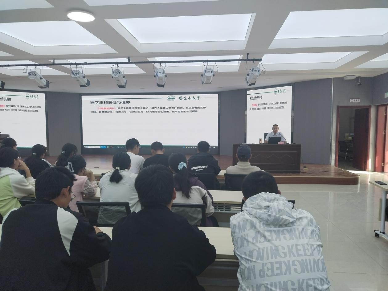 党委常委、副校长谢建新教授以“医道人生”为题,从国际医学教育改革趋势与国内基层医疗人才需求切入,为新生分析医学专业发展前景,拓宽行业视野,坚定从医信心;51看片